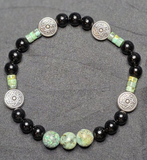 African Turquoise Jasper and Black Obsidian Bracelet